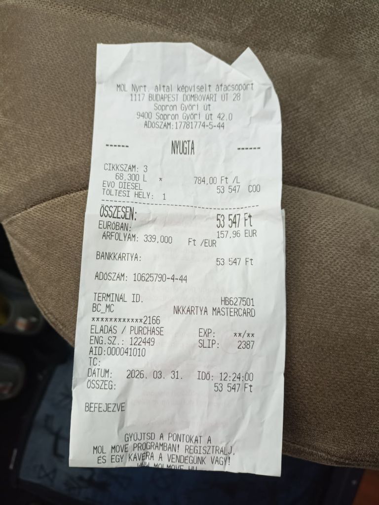 Die ungarische Grenze erreichen wir gegen 12 Uhr. Im Internet heißt es, dass der Liter Diesel hier nur 1,50 Euro kostet Deshalb haben wir nicht in Österreich für 2,14 getankt. Ist ja klar. An der ersten Tankstelle auf ungarischer Seite heißt es 789 Forint, also 2,06 Euro. Zu teuer, also weiter. Da, zwei Kilometer später, 615 Forint, 1,60. Wunderbar. Nehmen wir. Beglückt spendiere ich unserem Camper eine volle Ladung Diesel, 68 Liter. Ich schau beim Zahlen mit der Karte nicht so genau hin – aber Achim: „Schau, was die Dir berechnet haben: 785 Forint!“ Äh, wieviel ist das in Euro? „“ 2,04 Euro! “ Nichts wie rein in die Tankstelle und reklamieren. Um dann, bedauernd aber bestimmt, informiert zu werden, dass es in Ungarn zwei Preise gibt, einen für die Einheimischen und einen für Fahrzeuge mit ausländischen Kennzeichen. Liebe EU, bitte nimm unsere offizielle Beschwerde entgegen! Das ist eine sehr unfreundliche Diskriminierung aller Partnerstaaten und sollte, finden wir, nicht erlaubt werden.