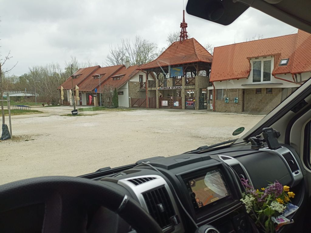 Am späten Nachmittag gegen Fünf erreichen wir unseren heutigen Stellplatz am Plattensee in Balatonfüzfö. Parken dürfen wir direkt vorm Strandbad. Es ist keiner da außer uns.