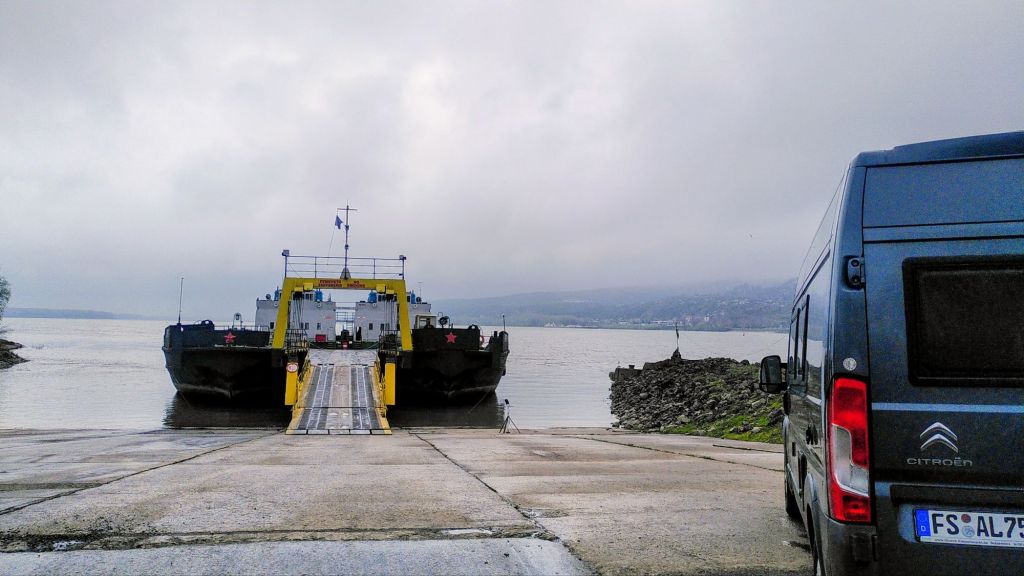 Die Donau bildet die Grenze zwischen Rumänien und Bulgarien. Wir wählen die schnellste Route und die Fähre um kurz vor Zwölf.