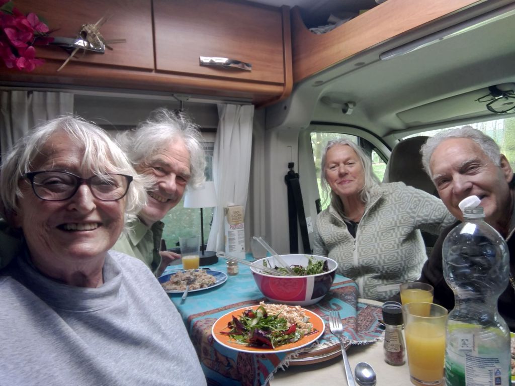 Zwei Stück Torte später suchen und finden wir keinen (!) Geocache und machen bis zum Abendessen Siesta im Bus.
