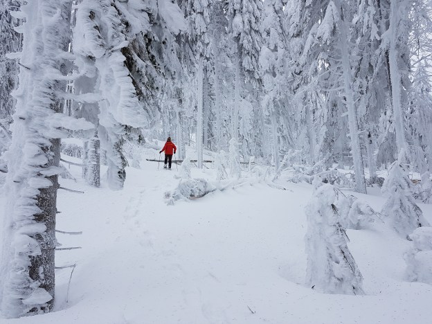 Es war der Zufall, der die Entscheidung eingefädelt hat. Und es war eine gute Entscheidung: Ziemlich glücklich sitzen wir jetzt in unserer mobilen Hütte und genießen die Winterwelt des Bayerischen Waldes.