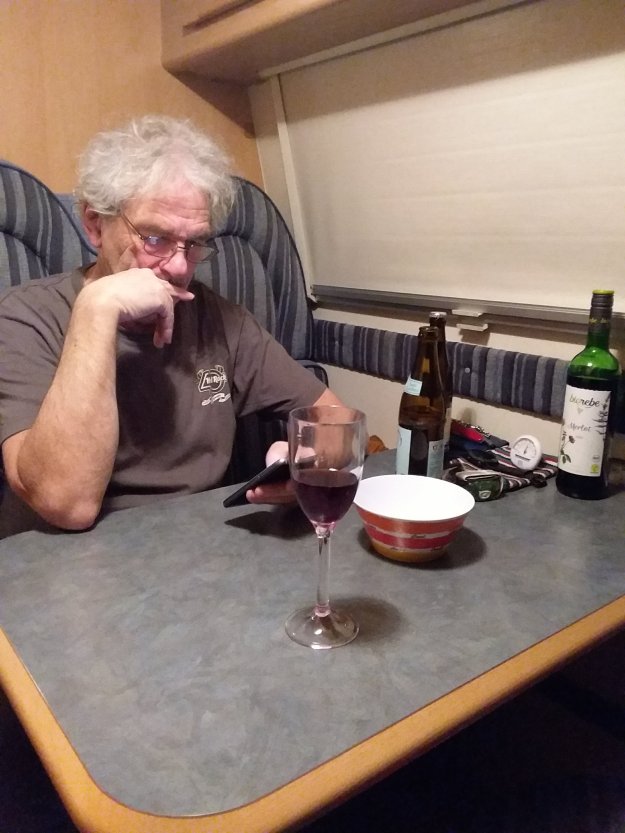 Wir bekommen ein schönes Plätzchen, in das wir bequem reinpassen und das allerschönste für mich: es ist genau gegenüber vom campingplatzeigenen Panoramabad. Für mich also wirklich „de luxe“.