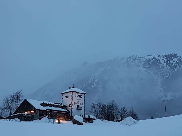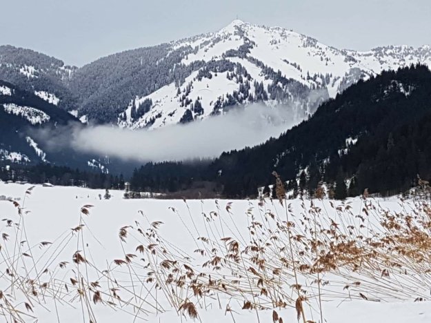 Am Nachmittag reicht die Zeit noch für einen Spaziergang zum Haldensee. Ringsherum ganz viel Schnee und die Allgäuer Berge. Achim macht schöne Fotos und wir genießen die Landschaft. Wir sind nur zwei Stunden gefahren und es fühlt sich an wie in einer anderen Welt.