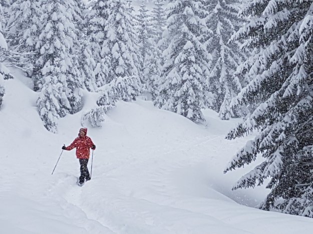 Herrlich, im Gegensatz zu gestern sind die Tannen nun voller Schnee. Das ist eine Vorfreude auf unsere heutige Schneeschuhtour zum Adlerhorst. Aber erst mal gibt’s ein schönes Frühstück.