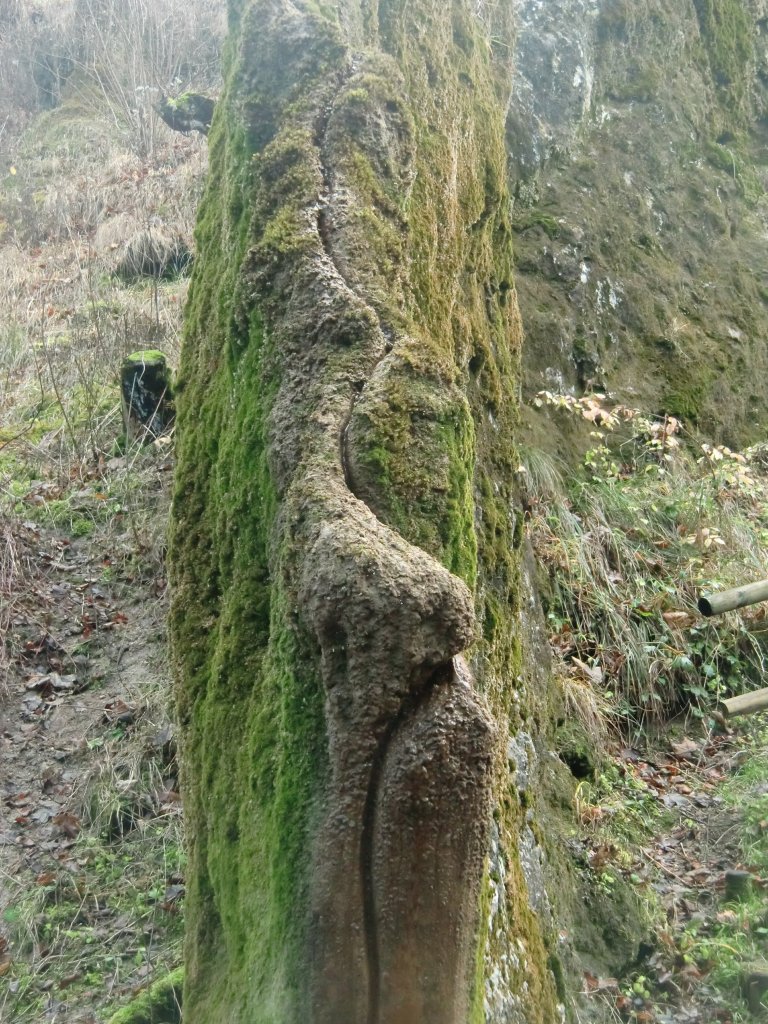 Steinerne Rinnen sind Gebilde, die unter bestimmten Bedingungen an kleinen, stark kalkhaltigen Quellen aus Kalktuffablagerungen entstehen. Diese Rinne ist in über 5.000 Jahren gewachsen. Damit ist sie zwar jünger als Lisar, aber doch auch beeindruckend alt.