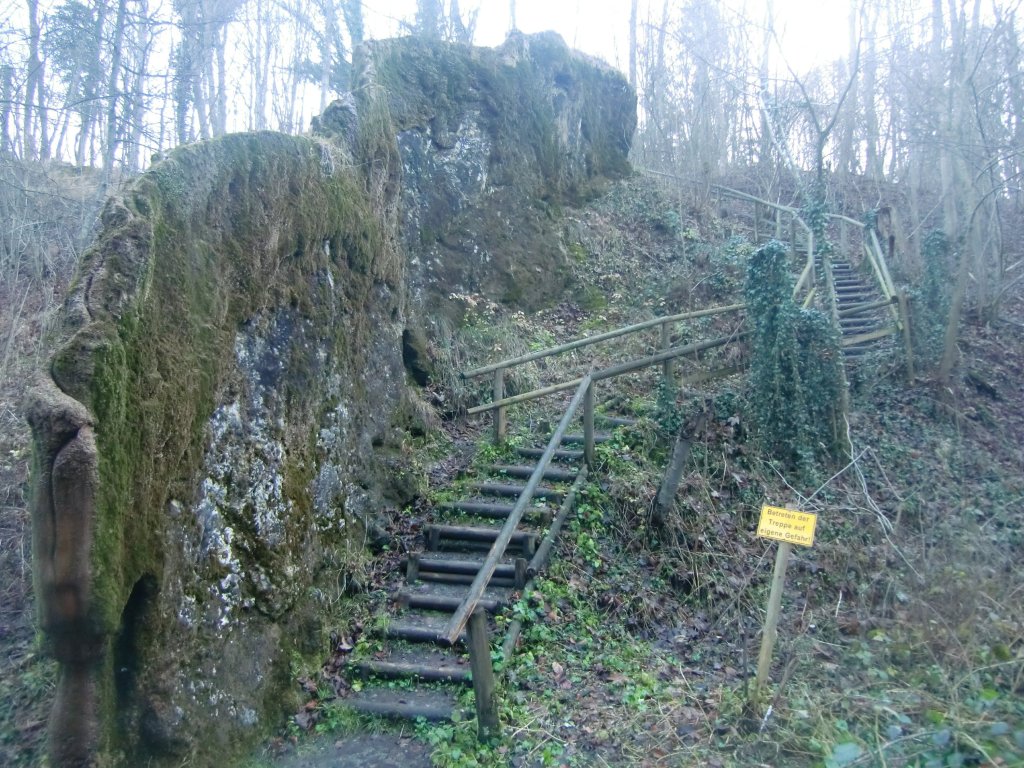 Nach dem Museumsbesuch lockt ein Spaziergang an die Isar. Unweit von Landau entdecken wir den 37 Meter langen und bis zu 5,4 Meter hohen „Wachsenden Stein von Usterling“, die größte steinerne Rinne Bayerns.