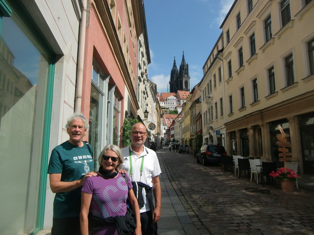 Erstmal das Frühstück mit Elbblick genießen. Trotz Corona darf hier ein Büffet angerichtet werden, auf dem wir leckere Sächelchen finden. Gegen 10 Uhr brechen wir auf zu einem kleinen Bummel durchs malerische Meißen. Vieles wurde restauriert, vieles hofft noch darauf. Über allem thronen die Burg und der Dom.