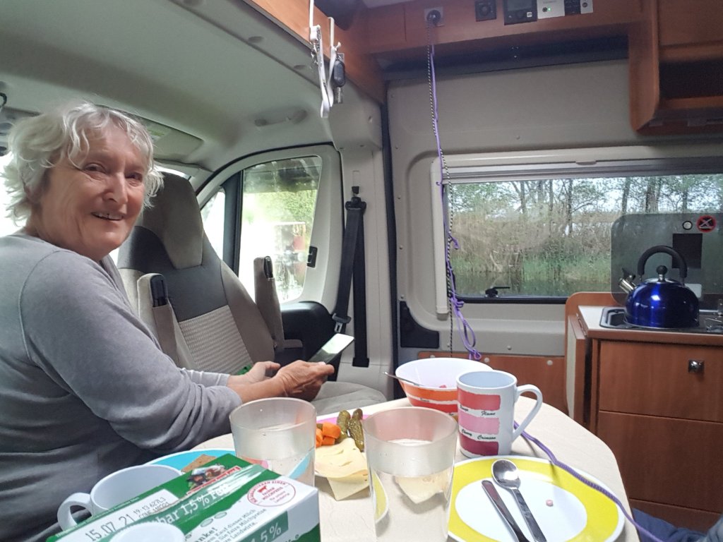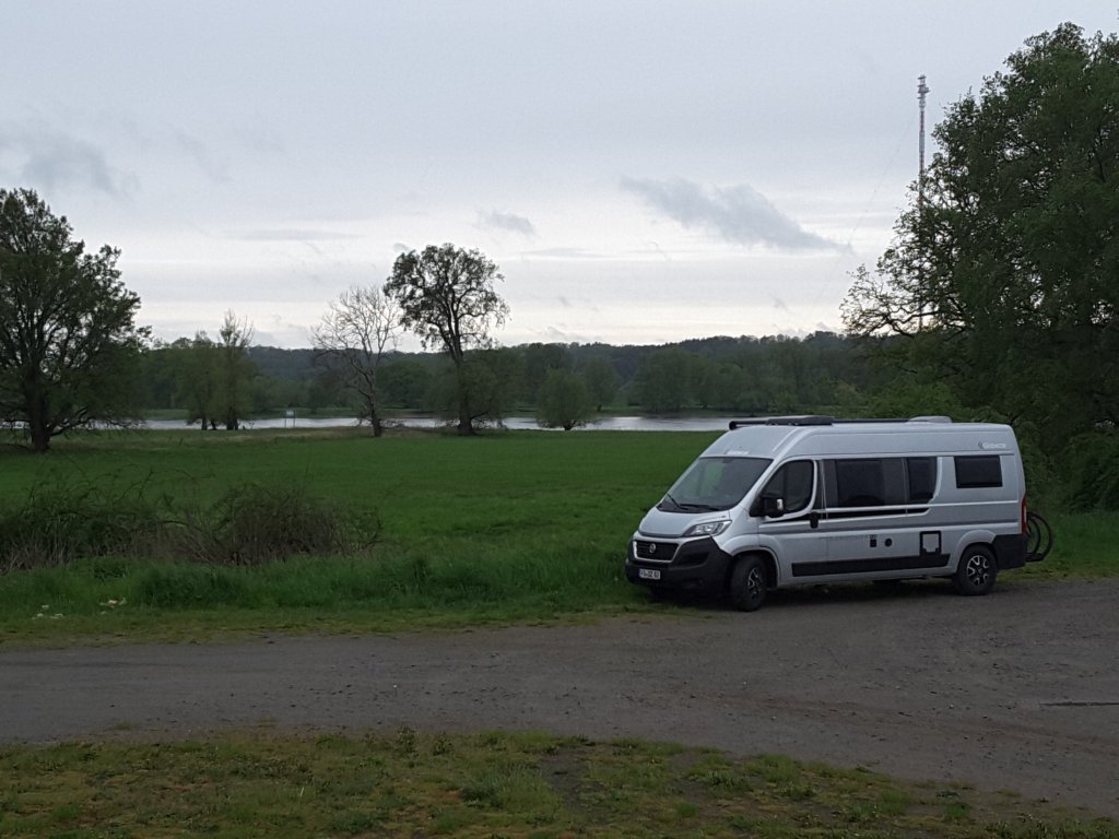 Im sog. Yacht-Hafen von Lenzen, etwa 20 Kilometer flussaufwärts, finden wir mit Hilfe unserer App Park4night einen schönen Übernachtungsplatz mit Elbblick. Immer wieder interessant: man ist selten ganz alleine. Als wir ankommen, stehen schon zwei Busse da, wenig später kommt noch ein weiterer hinzu. Wein aufmachen, Bloggen, Kochen, Lesen, vielleicht noch ein Spielchen später, im Bus ist es auch bei Regenwetter warm und gemütlich.