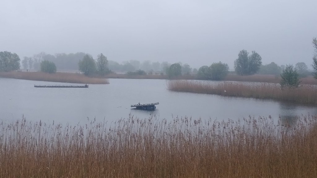 Von ihnen lässt sich heute keiner blicken, dafür begleitet uns der Gesang der Drosselrohrsänger (Danke, BirdNET!) beim Spaziergang, ein Haubentaucher lässt sich durch uns nicht beim Brüten stören und Flussseeschwalben kreisen über unseren Köpfen.