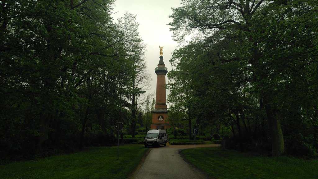 Das erste braune Hinweisschild des Tages entdecken wir noch vor der Autobahn. Es führt uns zu einem Schlachtendenkmal. Im Jahr 1675 siegten hier die Brandenburger über die Schweden. Man sagt über diese Schlacht, dass sie den Grundstein für die Größe Preußens gelegt habe. Teuer bezahlt: auf dem Schlachtfeld blieben 3000 Tote zurück.