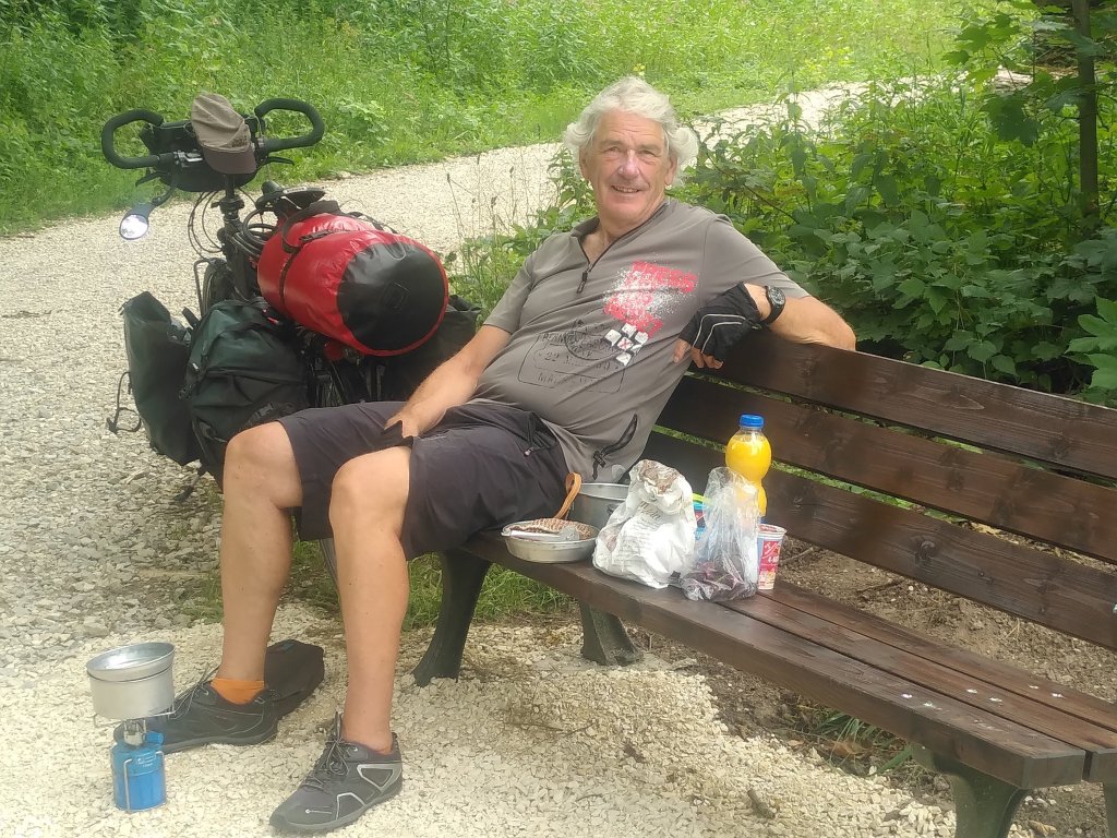 Bald ist Neuburg an der Donau erreicht und ein paar Kilometer weiter eine Brotzeitbank mit Flussblick.