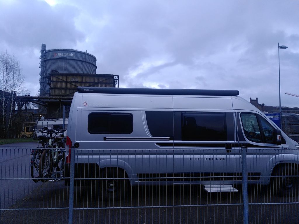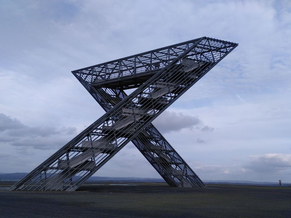 Zur Erholung machen wir am Nachmittag einen Spaziergang auf eine Halde. Auf ihrem Plateau steht das Saar-Polygon, das ich gestern per Zufall im Internet entdeckt habe. Es soll die Vergangenheit, den Wandel und die Zukunft der Region symbolisieren.