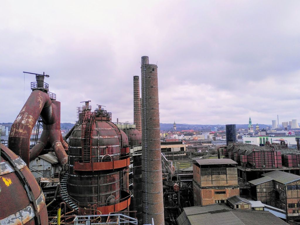 Treppauf, Treppab, vorbei an rostigem Stahl, einem fesselnden Gewirr aus Rohrsystemen, Gebäuden und Kaminen, hinauf in die schwindelerregende Höhe der Hochöfen. Über zwei Stunden streifen wir durch die Völklinger Hütte bei Saarbrücken, die meiste Zeit sind wir alleine unterwegs und entdecken ein Industriedenkmal, ein Weltkulturerbe, von dem ich bis vor kurzem nur den Namen kannte.
