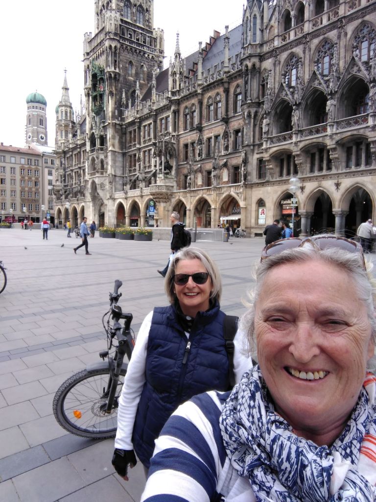 Einmal radeln wir nach München. Die Stadt ist recht leer. Keine Touristen, keiner, der sich zum Shoppen dort aufhält, niemand, der zur Arbeit unterwegs ist. Sehr viele Menschen machen zurzeit Homeoffice.