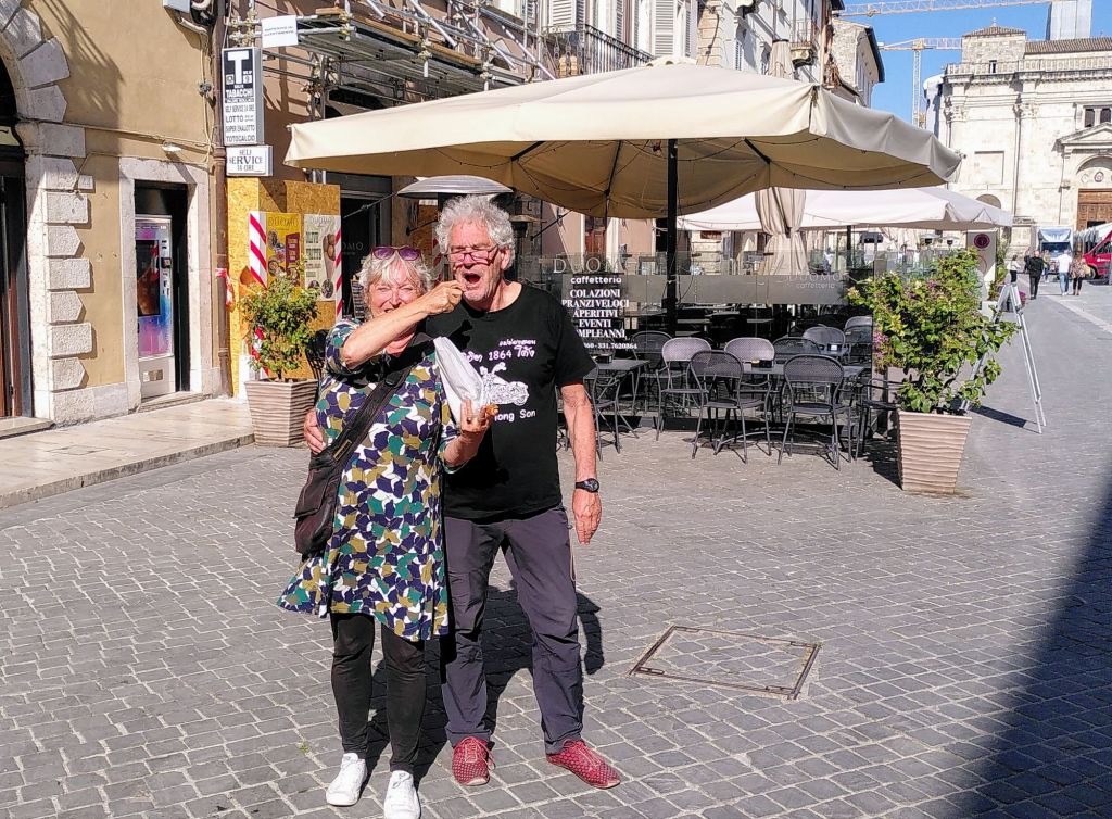 Bis Ascoli Piceno sind es von hier aus knappe 40 Kilometer. Schon während der kleinen Wanderung freue ich mich auf die dortige Spezialität, gefüllte frittierte Oliven, und dann ganz schnell auf einen leckeren Kaffee im Café Meletti.