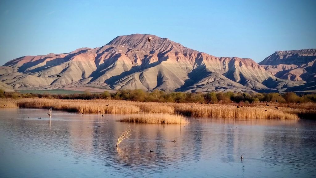 Ein großer Schwarm Störche kreist in einiger Entfernung über den Bergen. Hinter uns, wo gestern Abend die Wölfe waren, machen wir mit dem Fernglas drei Geier aus, die bräsig auf einem Felsvorsprung hocken.