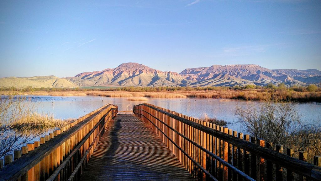 Die Berge gegenüber präsentieren sich in zartem Rot-grün. Wir können uns nicht satt sehen. Klickklickklick macht Achims Kamera.