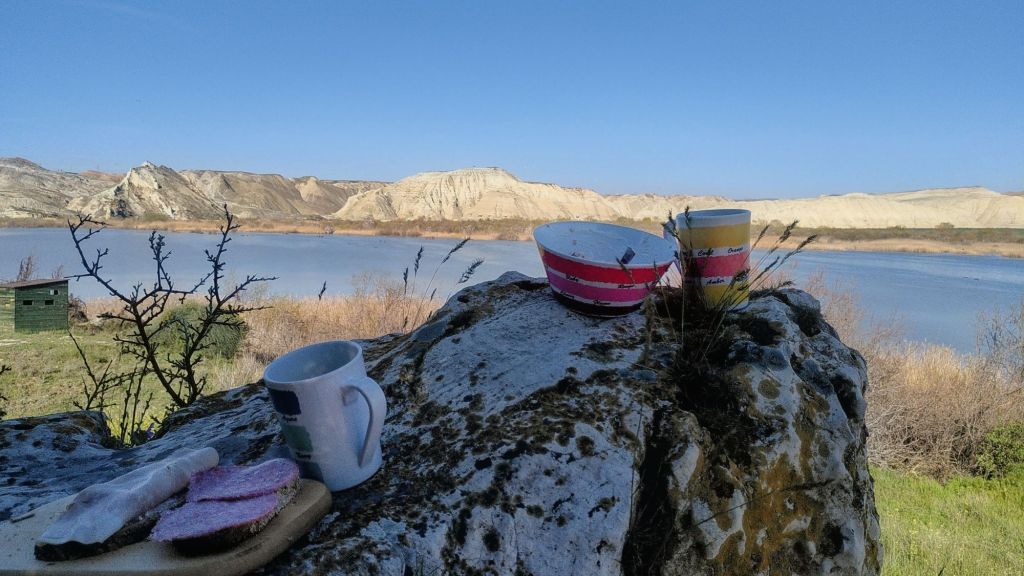 Im See gesellen sich Reiher, Gänse, Haubentaucher und Blesshühner zu den Kormoranen. Nach zwei Stunden in frischer Morgenkälte (5 Grad) koche ich Kaffee und mache Frühstück, das wir im Freien zu uns nehmen. Wir wollen hier draußen nichts verpassen.
