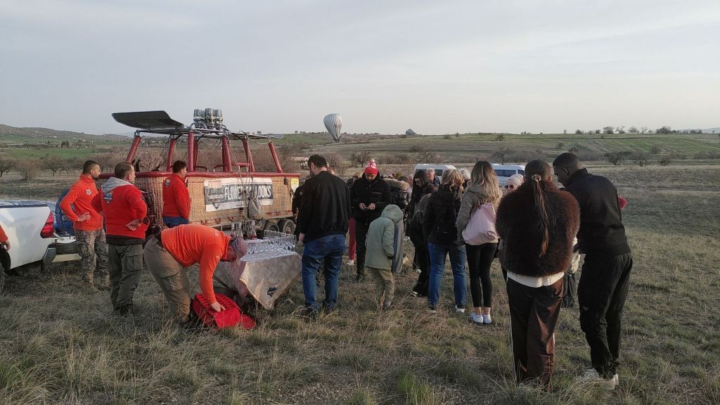 Binnen weniger Minuten gelingt es dem Team, wie wir es gestern schon bei anderen beobachtet hatten, unseren Korb auf einen Anhänger zu hieven. Präzisionsarbeit. Applaus für den Piloten und die Crew.
