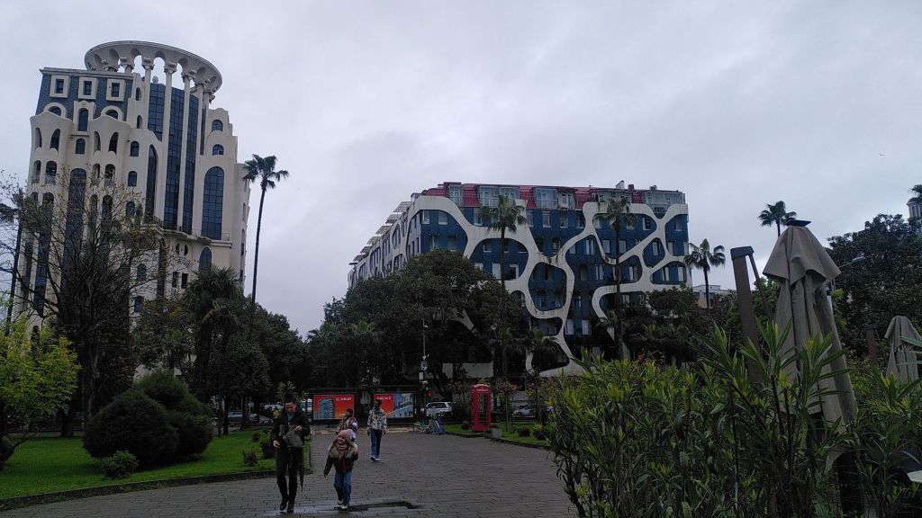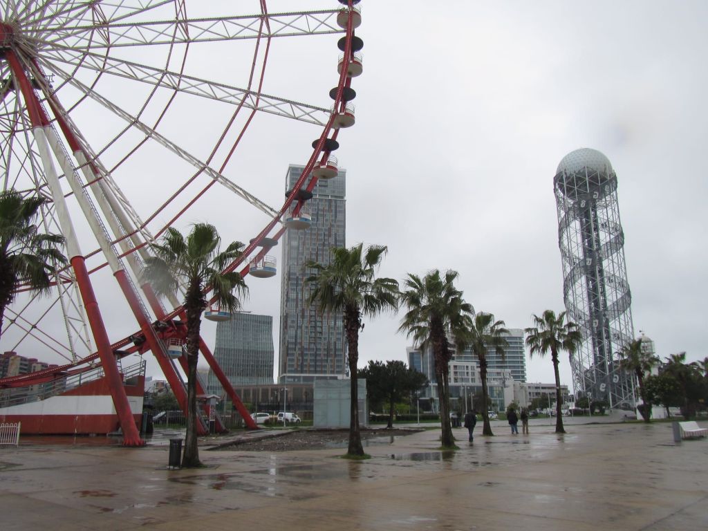 Georgien begrüßt uns mit Regen. Keinem Nieselregen, sondern einem kräftigen, ausdauerndem Landregen. Dabei sind wir hier am Rande der Großstadt, in Sichtweite des 200 Meter hohen Batumi-Turms, dem zweitgrößten Gebäude des Landes. Batumi selbst ist nach der Hauptstadt Tiblissi (Tiflis) mit rund einer Million Menschen die zweitgrößte Stadt Georgiens.