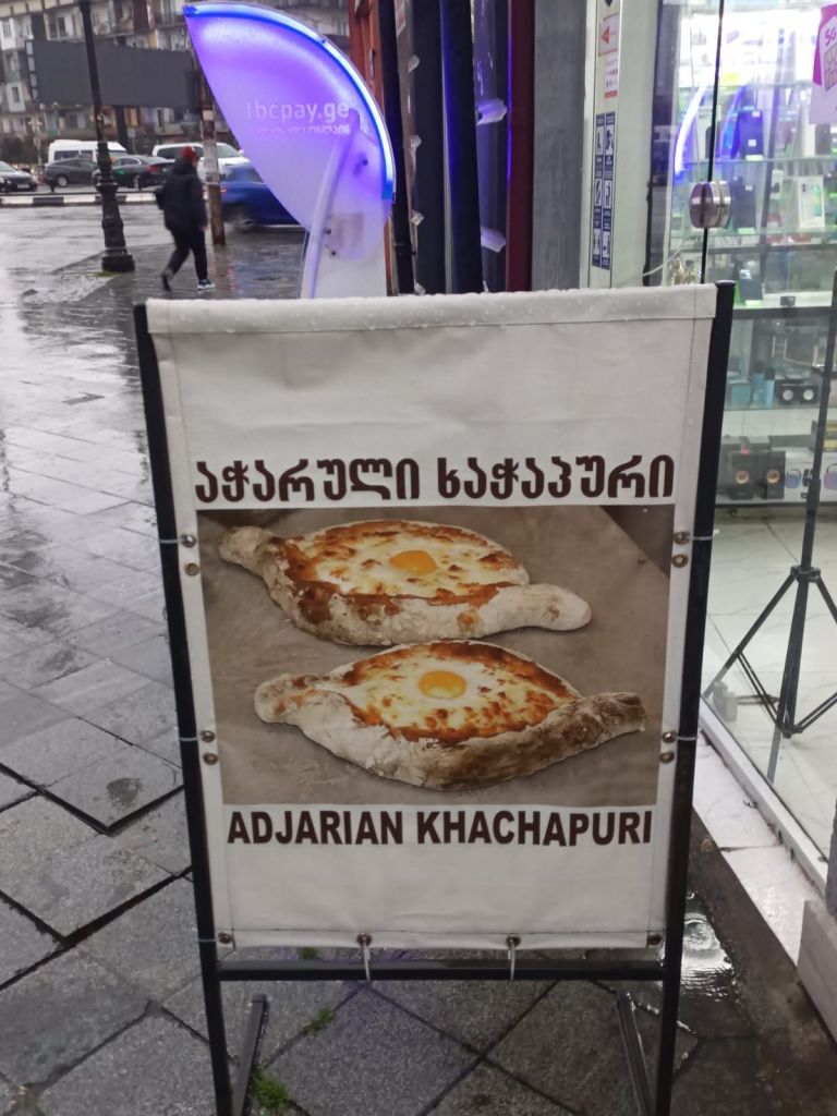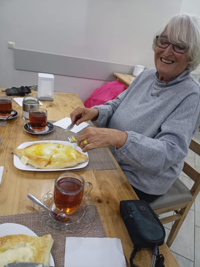 Angelina, in deren Garten wir wohnen, hat uns zum Abendessen ein Lokal empfohlen, in dem wir eine weitere georgische Spezialität probieren können.