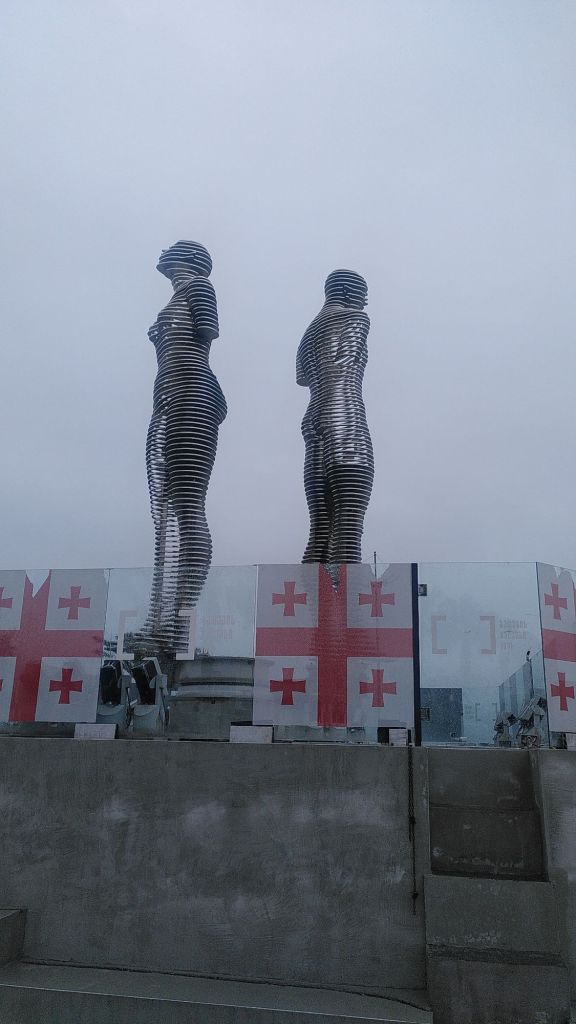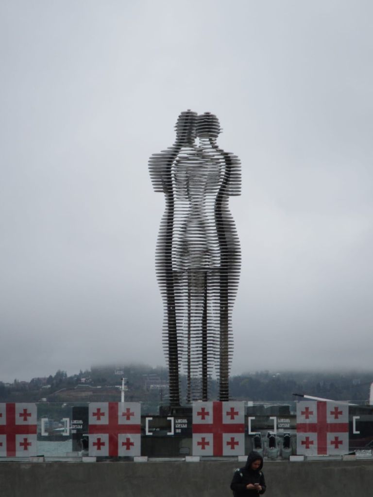 Das Denkmal von Ali und Nino ist eine kinetische skulpturale Komposition der georgischen Künstlerin und Bildhauerin Tamar Kvesitadze aus dem Jahr 2010. Sie ist acht Meter hoch, fast durchscheinend und aus Stahlfiguren von Ali und Nino. Langsam bewegen sie sich aufeinander zu und schaffen so ein einzelnes integrales Stück, aber nur für einen Moment, dann werden sie wieder getrennt. Der Vorgang wird alle zehn Minuten wiederholt.