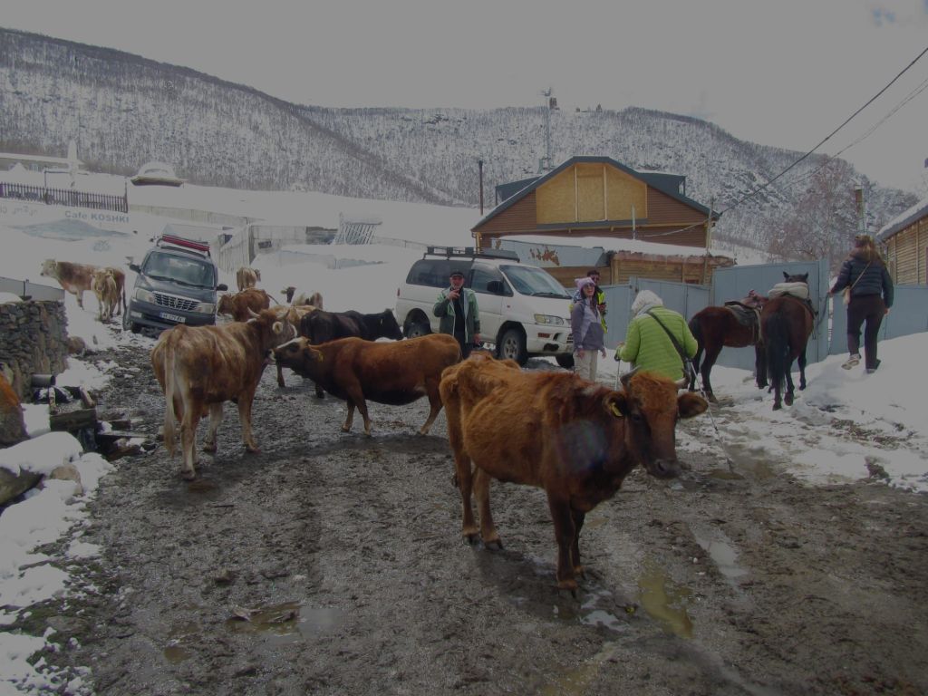 Wenn man auf die Landkarte guckt, sieht man, dass das kleine Dorf Ushguli, welches zu den höchst gelegenen Orten Europas zählt, von Gletschern umgeben ist. Wir wollen heute nicht nur auf die Karte schauen sondern es selbst erleben. Dafür brauchen wir ein geländegängiges Fahrzeug. Obwohl wir zwischen der Skisaison und der Wandersaison liegen, gibt es ein paar Anbieter, die bereit sind, uns mit einem 4-wheel-drive auf 2200 Meter hochzufahren.