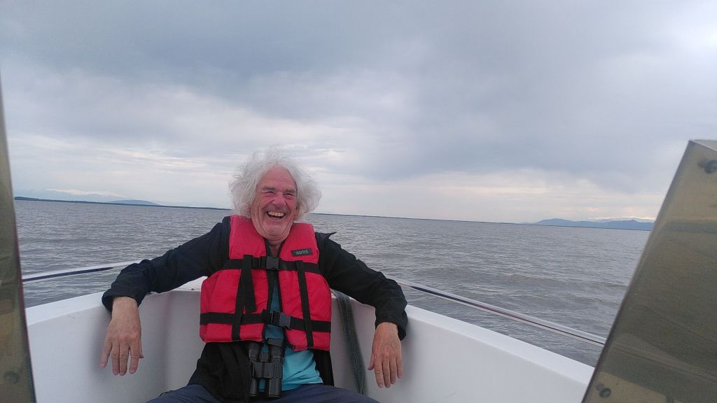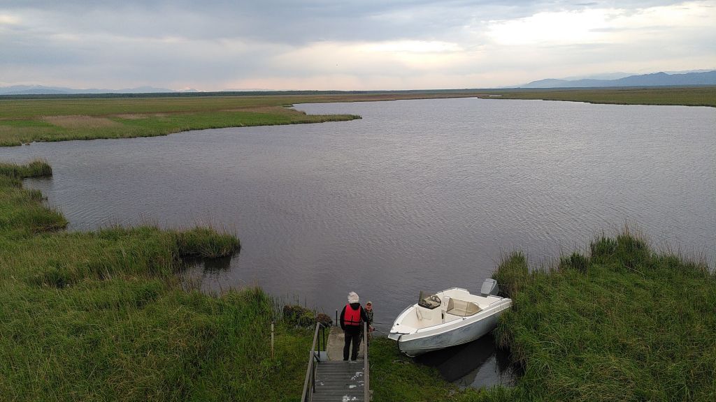Rechtzeitig zum Sonnenuntergang fährt der Käptn uns zu einem Vogelbeobachtungsturm.