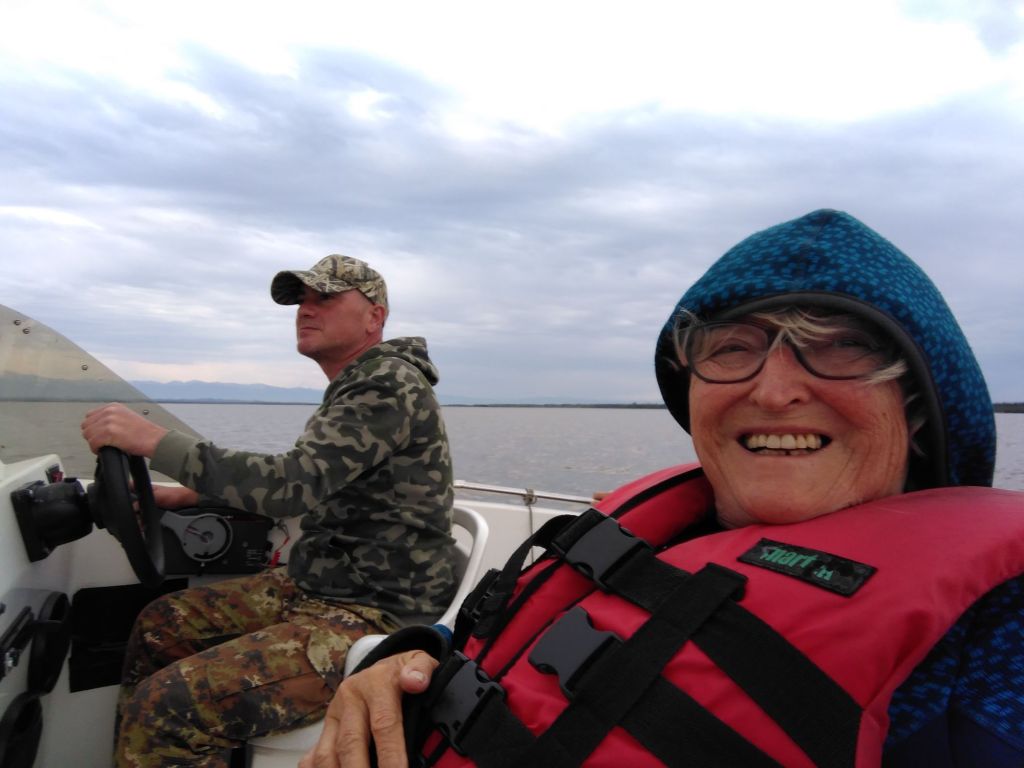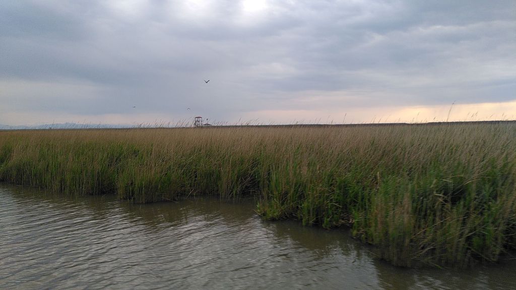 Den Paliastomi-See erreichen wir um viertel vor Fünf, reine Fahrzeit also wie vermutet gute sechs Stunden. Im Besucherzentrum können wir tatsächlich noch eine Bootsfahrt buchen. Wir queren zuerst den See, der eher eine Lagune als ein See ist und teilweise durch Sanddünen und einen schmalen Kanal vom Schwarzen Meer getrennt wird. Er ist nur drei Meter tief, liegt etwa 30 Zentimeter über dem Meeresspiegel und wird vom Süßwasserfluss Pichori gespeist.