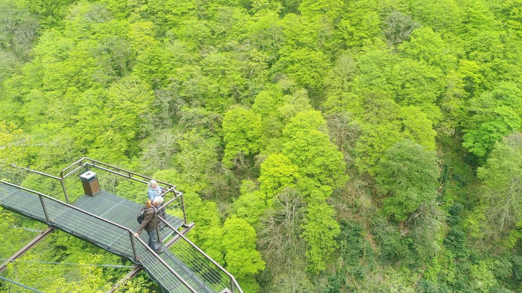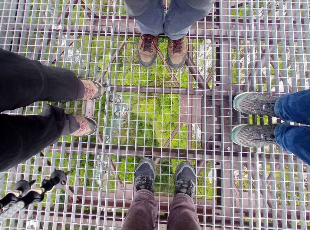 Es ist ein Rundweg und wir laufen quasi eine Etage höher wieder zurück. Im Internet ist zu lesen, dass man insgesamt 500 Treppenstufen läuft. Macht nix, wir sind gestern lange im Auto gesessen und freuen uns jetzt über die Bewegung.