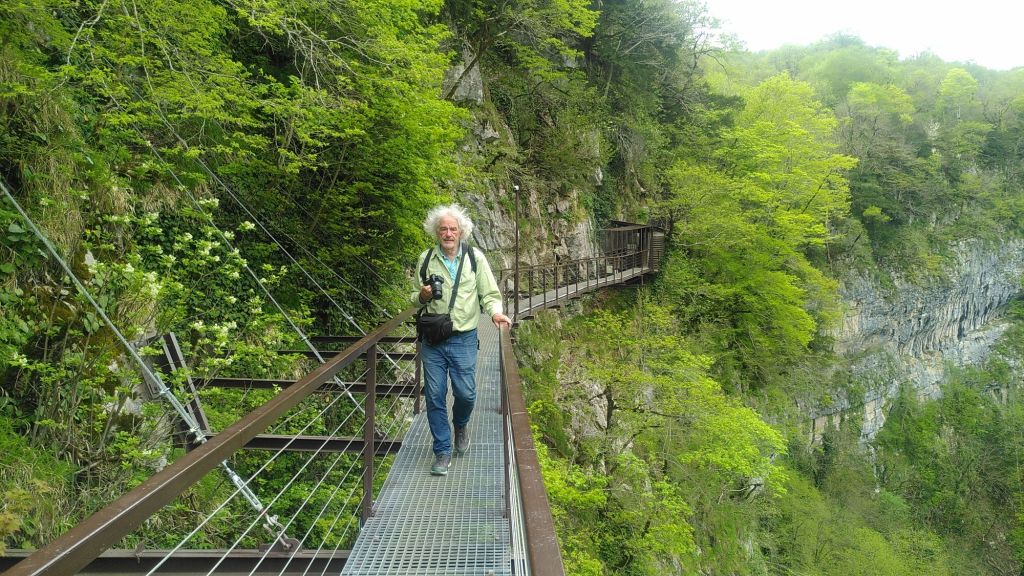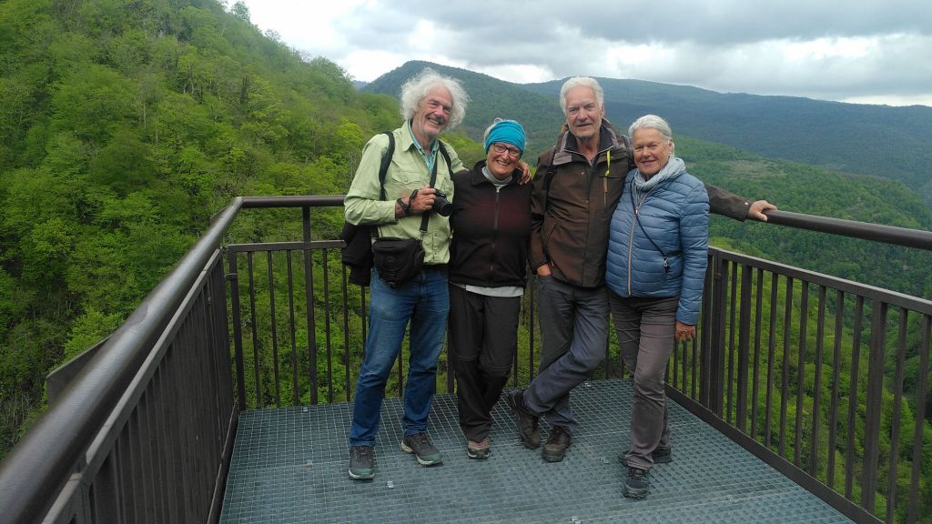 Heute lockt der Okatse-Canyon, etwa 100 Kilometer nordöstlich von uns. Er ist ein Naturdenkmal, bekannt für einen etwa 780 Meter langen, schwebenden Steg entlang steiler Kalksteinfelsen. Besucher wandern in ca. 100 bis 140 Metern Höhe über dem Schluchtgrund mit Aussichtsplattformen und Wasserfällen.