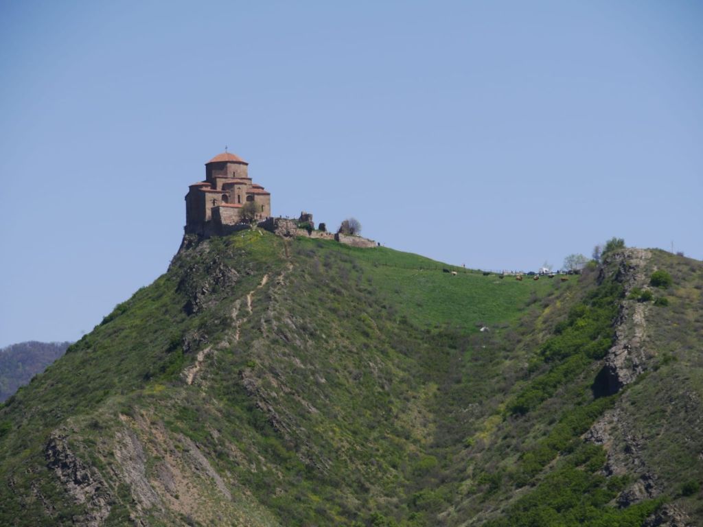 Vorher schauen wir uns bei Mzcheta noch die Kirche Dshwari an, die hoch oben auf einem Bergrücken thront und als eines der vollkommensten erhaltenen Werke frühgeorgischer Baukunst gilt.