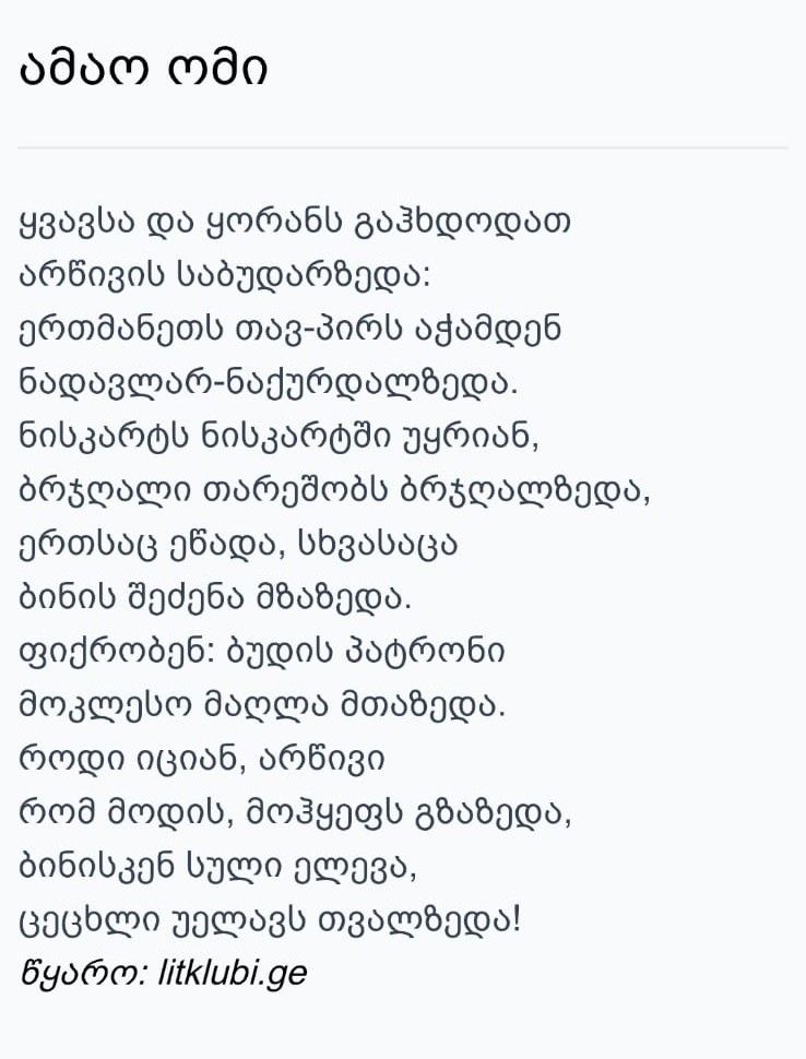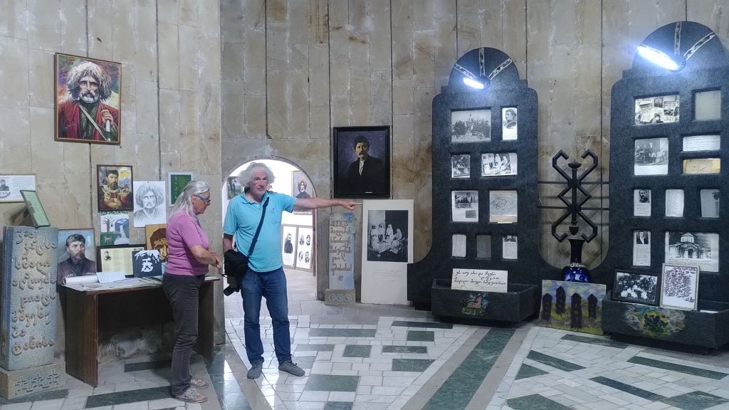 Wir fahren bis ins Dorf Chargali. Hier befindet sich ein Museum für einen der bedeutendsten georgischen Schriftsteller Wascha-Pschawela. Es beherbergt über 2.000 Exponate, darunter Erinnerungsstücke an das Leben und Werk des Dichters, Ausgaben seiner Gedichtsammlungen aus verschiedenen Epochen, Gemälde, Grafiken und Skulpturen, die ihm gewidmet sind.