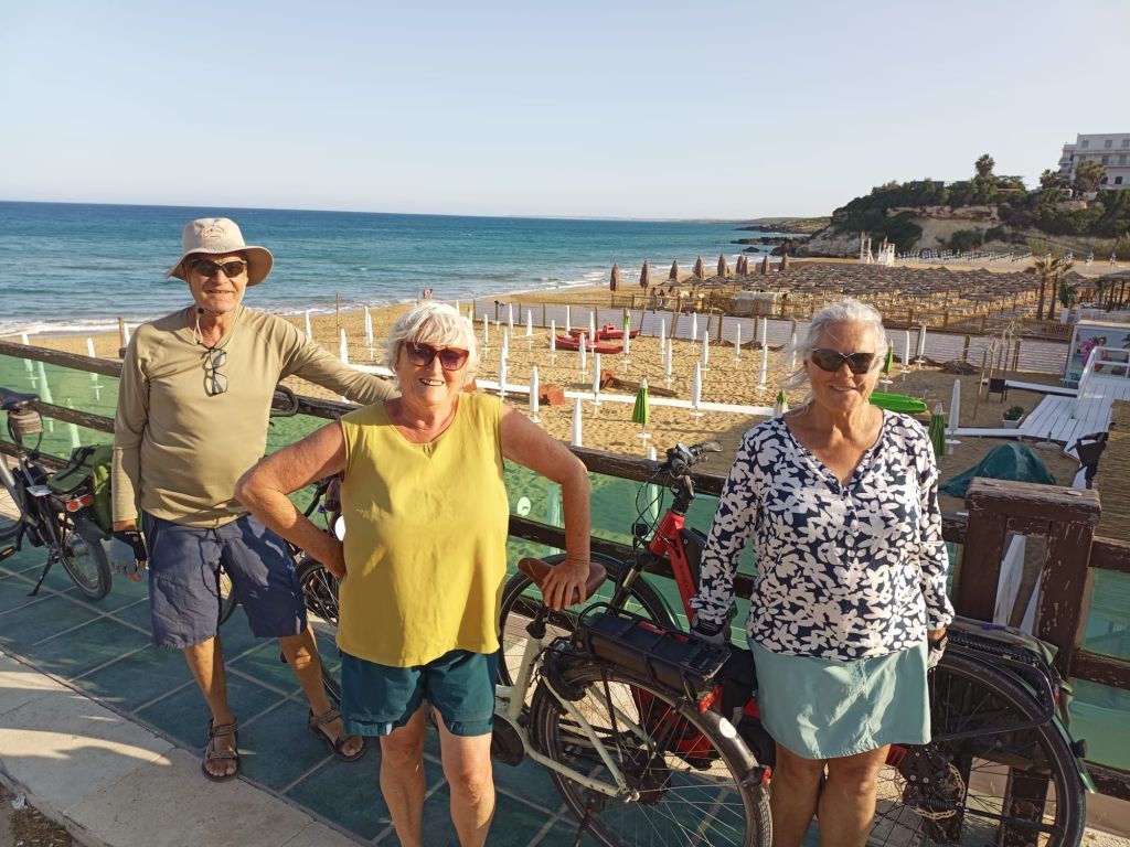 Wir sind mal wieder auf einem Campingplatz. Das bedeutet duschen, Haare waschen und ganz gemütlich draußen frühstücken. Gegen Elf fahren wir mit den Rädern am Meer entlang nach Süden. Wir wollen ins Naturreservat Vendicari.