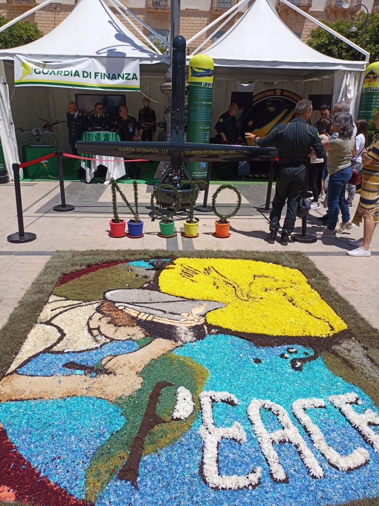Sogar an einem Montag sind viele Besucherinnen und Besucher da, um sich die Blumenkunst anzuschauen. Gemeinsam steigen wir auf den Kirchturm, um die Pracht von oben zu bestaunen und laufen durch weitere geschmückte Straßen, in denen sich sogar die Guardia di Finanza und die Carabinieri mit Blumenarragements beteiligen.