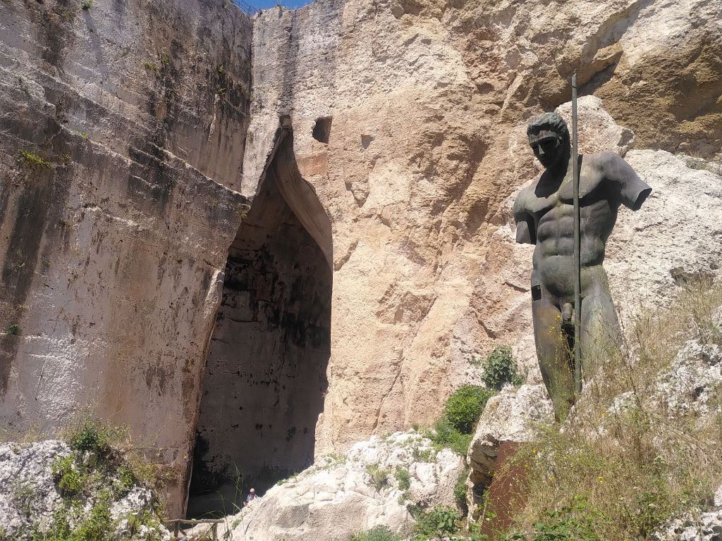 In den Latomien, den Steinbrüchen aus antiker Zeit haben wir Spaß mit dem Ohr des Dionysios:  eine 60 Meter lange und 20 Meter hohe Höhle mit erstaunlicher Akustik. Klatschen, Stampfen Flüstern werden je nach Position als Echo oder laut übertragen. Von der Schulklasse über die jungen Pärchen bis hin zu den Senioren wird gepfiffen, gesungen, geklatscht.