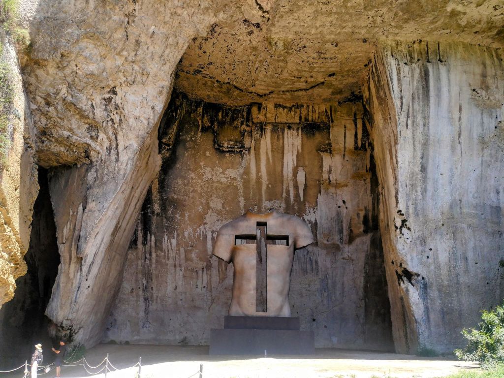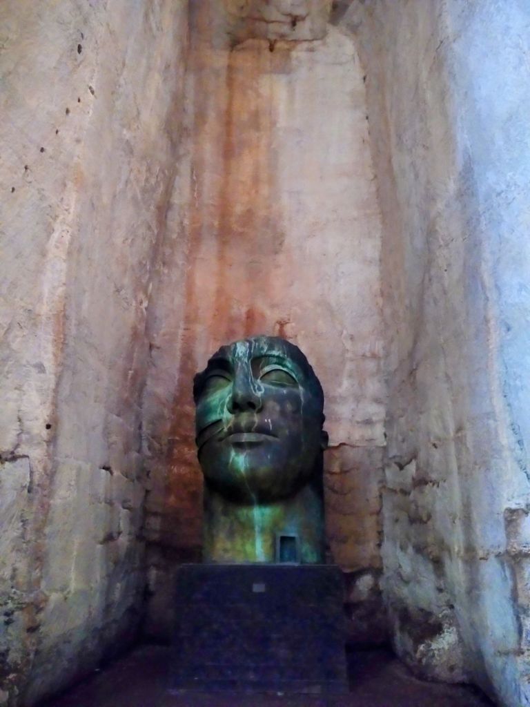 Hier stoßen wir zu unserer Überraschung auf einen „alten Bekannten“, den polnischen Bildhauer Igor Mitoraj, dessen Werke wir schon in Syrakus bewundert haben.