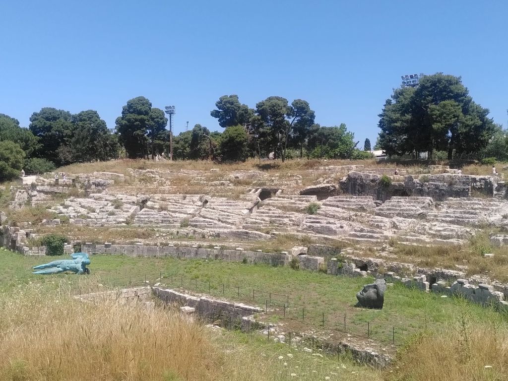 Wir haben gestern noch nicht alles gesehen in Syrakus. Während der griechischen Herrschaft entstanden hier weitere meisterhafte Bauwerke: das Griechische Theater war zur damaligen Zeit das größte Amphitheater mit 15.000 Sitzplätzen und einem Durchmesser von 140 Metern. Es wurde im 5. Jahrhundert vor Christus errichtet und glänzte durch seine hervorragende Akustik.