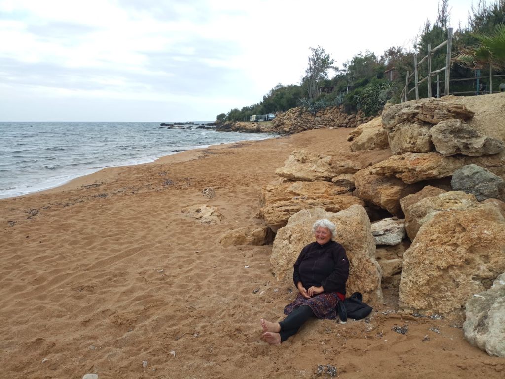 Schwimmen gehen? Geht heute Morgen. Der Wind hat sich gelegt, das Wasser ist recht glatt und nicht zu kalt. Wenn wir uns in die richtige Richtung drehen, können wir den Ätna sehen.