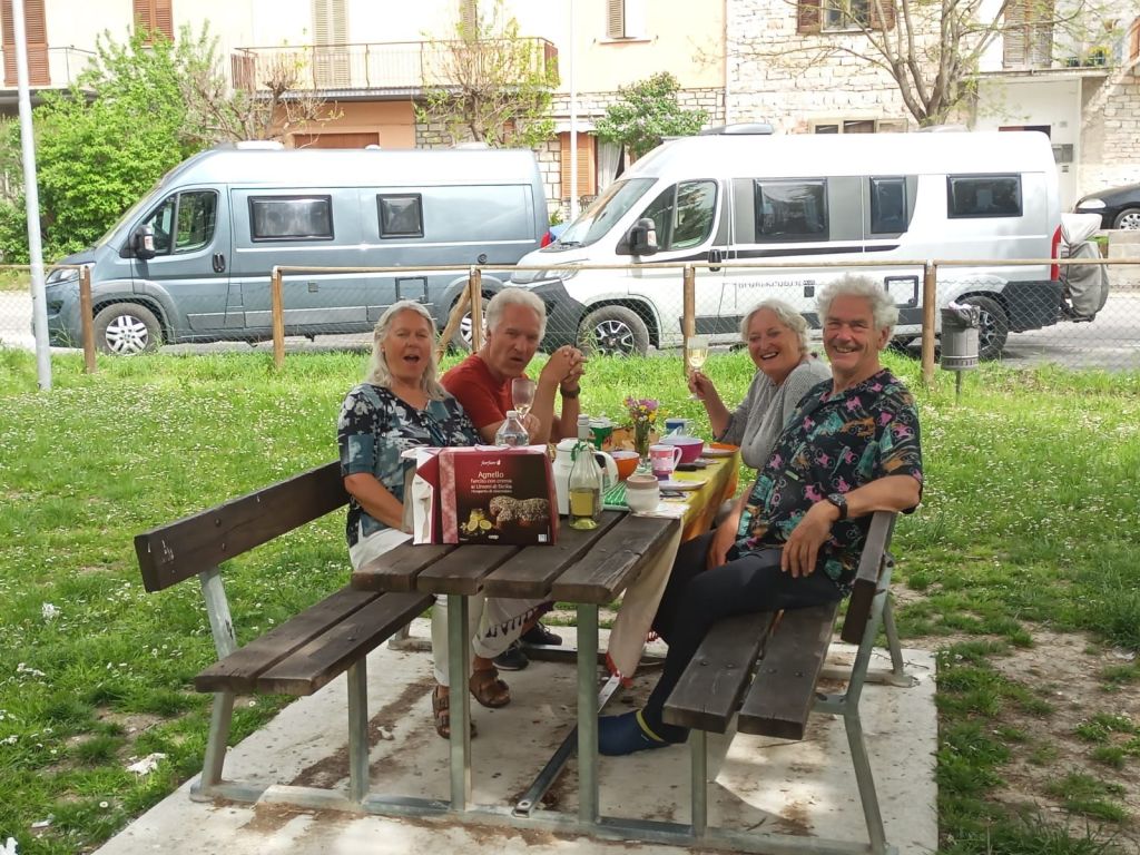 Abruzzen bedeutet so viel wie “schroff” oder “abschüssig”, was perfekt zu den hügeligen Gegebenheiten vor Ort passt. In den Nationalparks hier sind Braunbären, Wölfe, Gämse und Adler angesiedelt. Heute sitzen wir sicher im Auto. Morgen wird die Sache schon anders ausschauen…