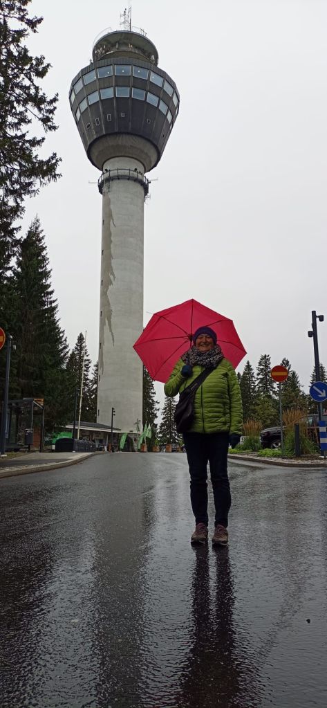 Der Tag heute ist grau und es regnet viel. Und doch ist es nicht richtig grau, denn die Ruska sorgt für Farbe. Wie riesige Laternen erhellen die gelben Birken den Weg.