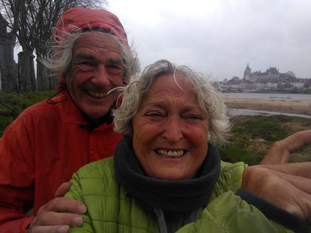 Das Wetter ist leider bescheiden, grau und 7 Grad, und zu allem Überfluss regnet es. Sehr. Dennoch suchen wir am Ufer der Loire die geeignete Stelle für ein Foto. Kann man inmitten der verschiedenen Grautöne die Stadt erkennen?
