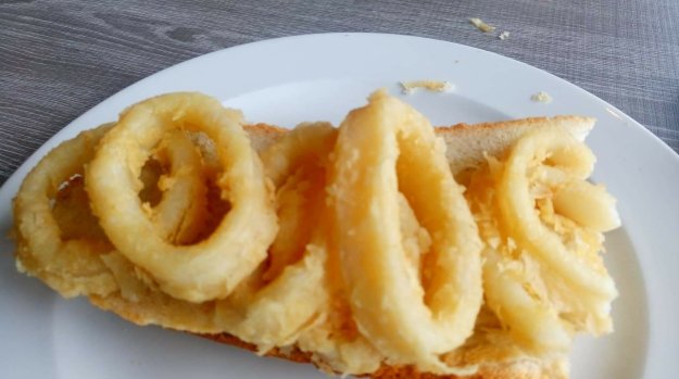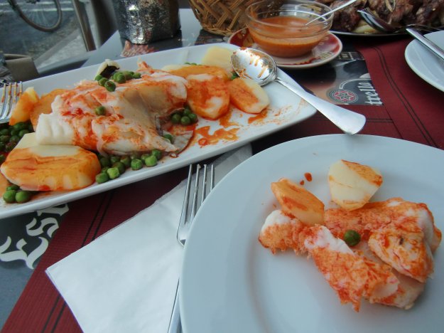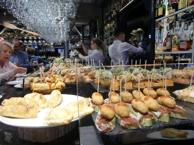 Schon gestern Abend haben wir der hiesigen Sitte folgend einen Zug durch die Bars gemacht und u. a. marinierten Kabeljau, mit Paté gefüllte Macarons (ein Traum!) oder einen pechschwarzen Böller, der mit Fischbrei gefüllt war, gegessen. Keine Ahnung, was das war, hat hervorragend geschmeckt.