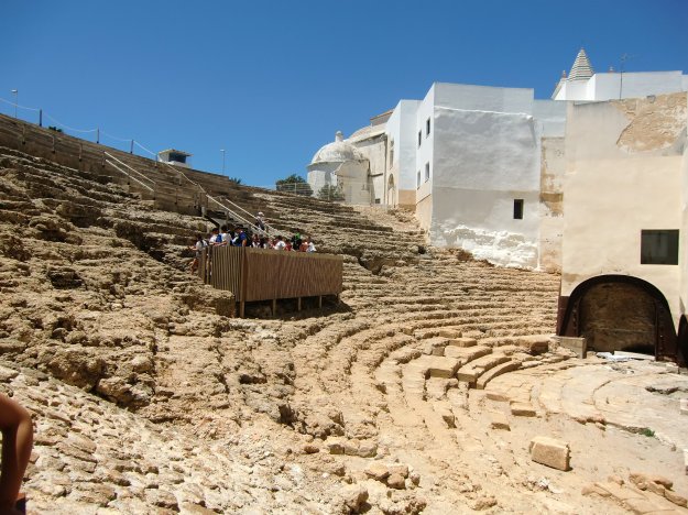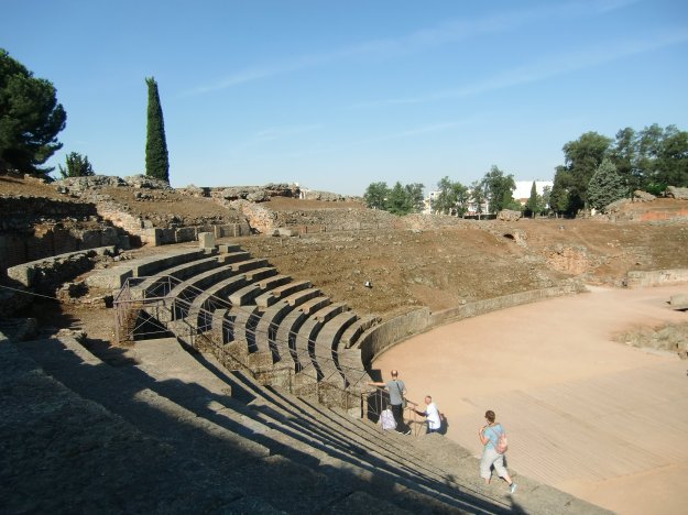 Wir schlendern weiter zum römischen Theater, das zufällig 1980 bei Bauarbeiten entdeckt wurde und mit einer Kapazität von 20 000 Menschen das älteste und größte in Spanien ist. Es wurde auf das 1. Jh. v. Chr. datiert.