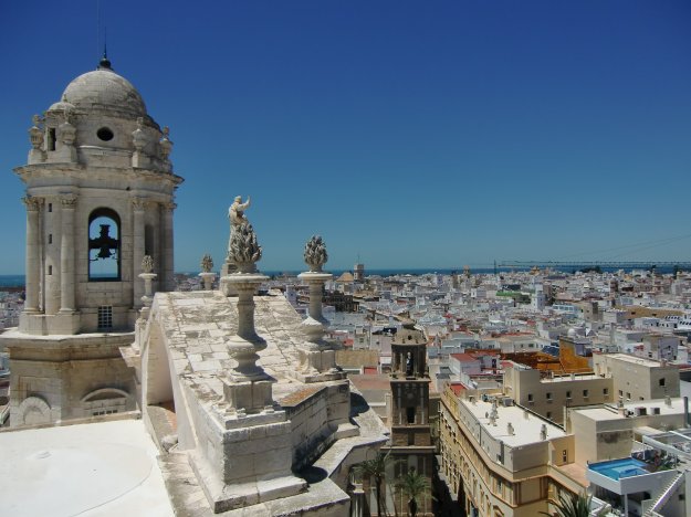 Eigentlich sollten wir uns beim Levante, dem für die Gegend typischen warmen Ostwind, bedanken. Denn so fahren wir über die Brücke Puenta de la Constitución de 1812, die erst 2015 eingeweiht wurde und eine weitere Verbindung zwischen dem Festland und der Stadt Cádiz darstellt. Sie hat, sagt Tante Wiki, die größte Spannweite aller spanischen Schrägseilbrücken und die drittgrößte von ganz Europa. Das Bild dazu ist von Achim, nicht von mir.