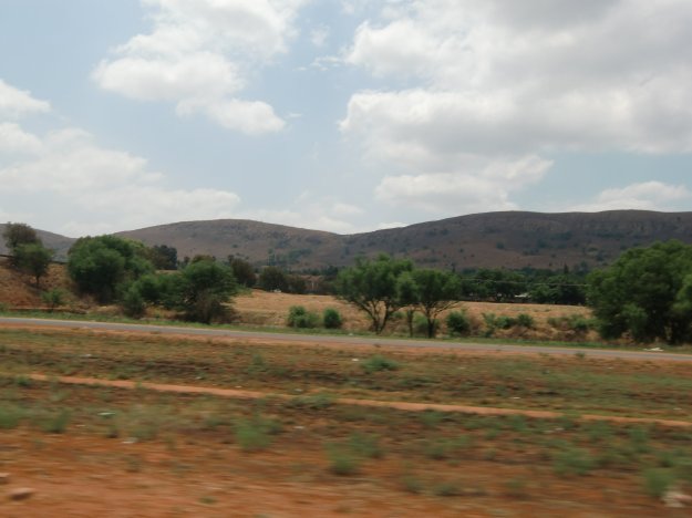 Die Straße ist bisher in sehr gutem Zustand. Es gibt Verkehr, aber nicht zu viel. Die Landschaft wird sich verändern im Verlaufe der insgesamt 1500 Kilometer. Heute säumt zuerst eine wellige Hügellandschaft unseren Weg, gefolgt von Savanne, immer wieder unterbrochen von einfachen kleinen Dörfern.
