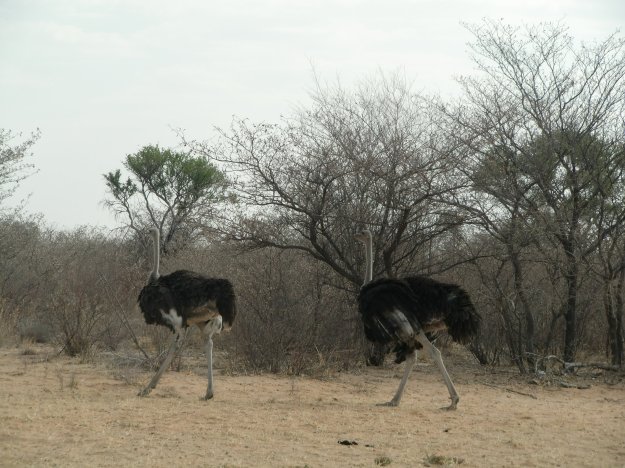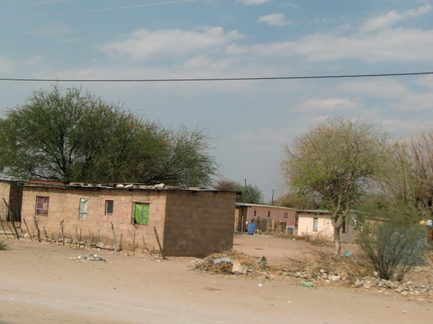 Gestern habe ich ein bisschen übertrieben. Wir fahren heute keine 900 sondern nur 807 Kilometer auf dem Transkalahari- Highway in Botswana.Von 9 bis 18 Uhr sind wir unterwegs. Die Straße, die vor allem dazu dient, den Handel und Transport zwischen Namibia, Botswana und Südafrika zu verbessern, zieht sich pfeilgerade durch die Halbwüste.Strauße, ein kleiner Schakal, Ziegen, Rinder, Eselskarren und ausgebrannte Autos säumen den Straßenrand und unterbrechen die Monotonie der Landschaft. Am Anfang passieren wir ab und zu noch eine Ortschaft, so klein, dass man schon wieder draußen ist, ehe man sich’s versieht. Wellblechhütten, einfache kleine Häuser aus Beton, mobile Verkaufsstände, wenig Menschen.