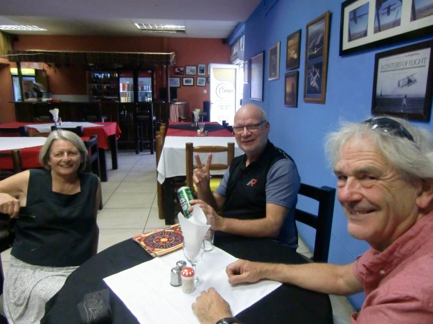 Noch 160 Kilometer und wir sind – endlich – in Namibia. Übernachtet wird heute im East Gate Rest Camp. Zum Abendessen gibt es, sehr landestypisch, Kudu. Wir sind angekommen.