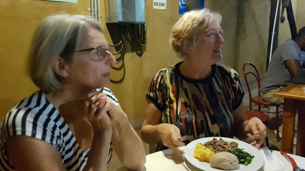 In einem Lokal um die Ecke, das von sehr freundlichen Frauen betrieben wird, gibt es ein köstliches Abendessen mit pulled Beaf, einem Pampf aus Getreide (wir haben es nicht verstanden, mit der dazugereichten Chilliesauce war er lecker), Kürbisgemüse und so einer Art Mangold, würzig und fein im Geschmack.Morgen erwartet uns mit einer fast 900 Kilometer langen Strecke ein noch längerer Fahrtag, also ab ins Bett und ausruhen!