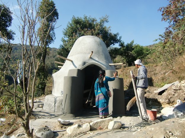 Die Erdhäuser sind fertig. Letztes Jahr habe ich ja noch an einem der beiden kleineren beim Füllen der Säcke mitgearbeitet, für das große wurde gerade erst das Fundament gelegt. Heuer ist noch ein ganz neues dazugekommen, bei dem Luke die außergewöhnliche Gestaltung gereizt hat.
